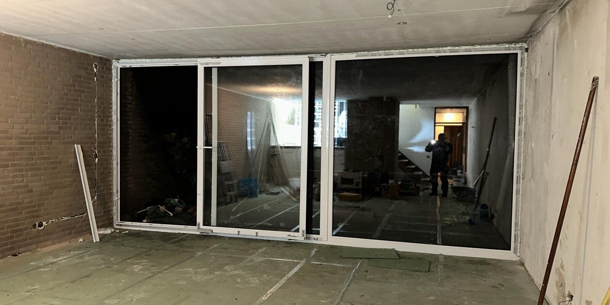 Complete schuifpui vervangen met triple glas over het huis heen.